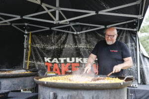Nälkäiset kisaajat pääsivät nauttimaan kebab-pyttipannua kierroksen jälkeen.